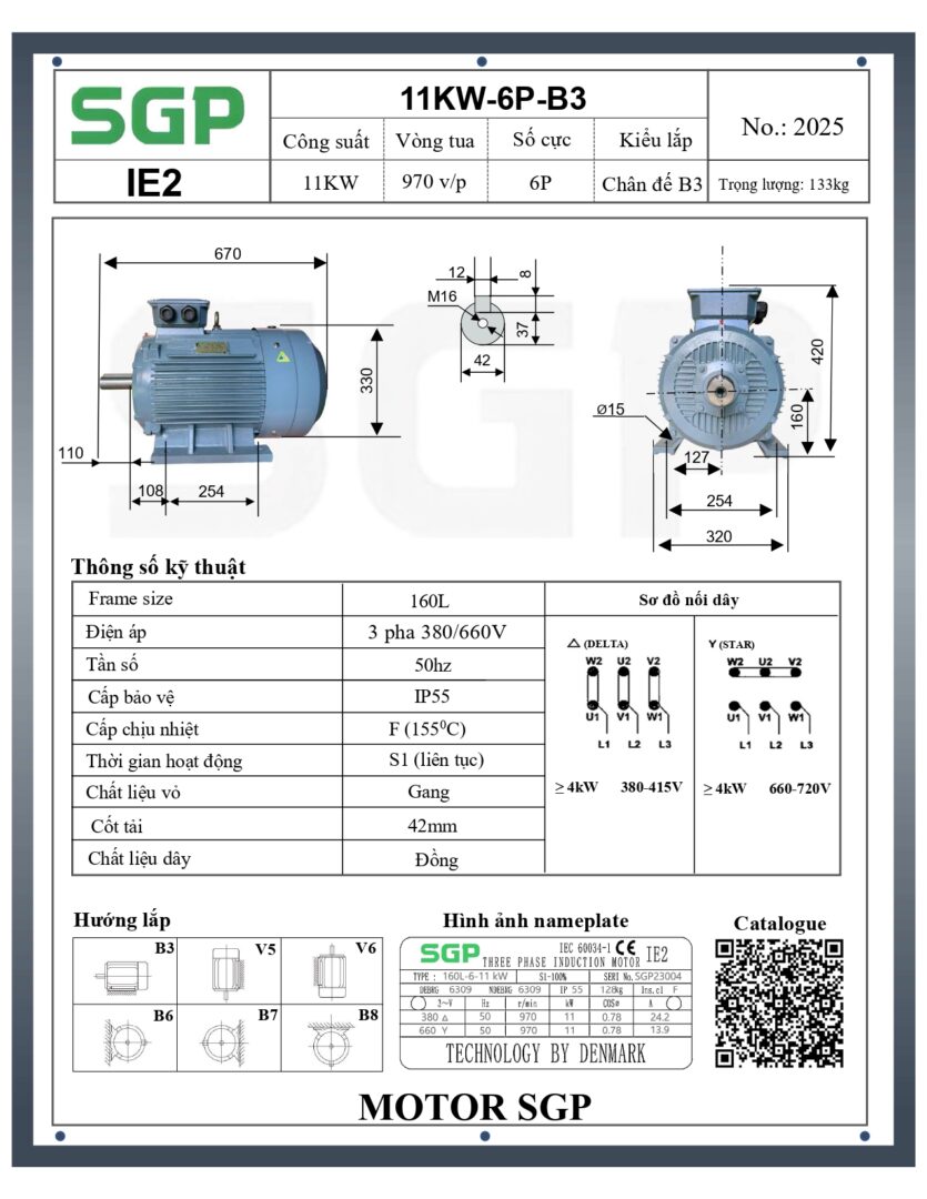 Thông số kỹ thuật của Động Cơ Điện SGP 11kW 6 Cực Chân Đế