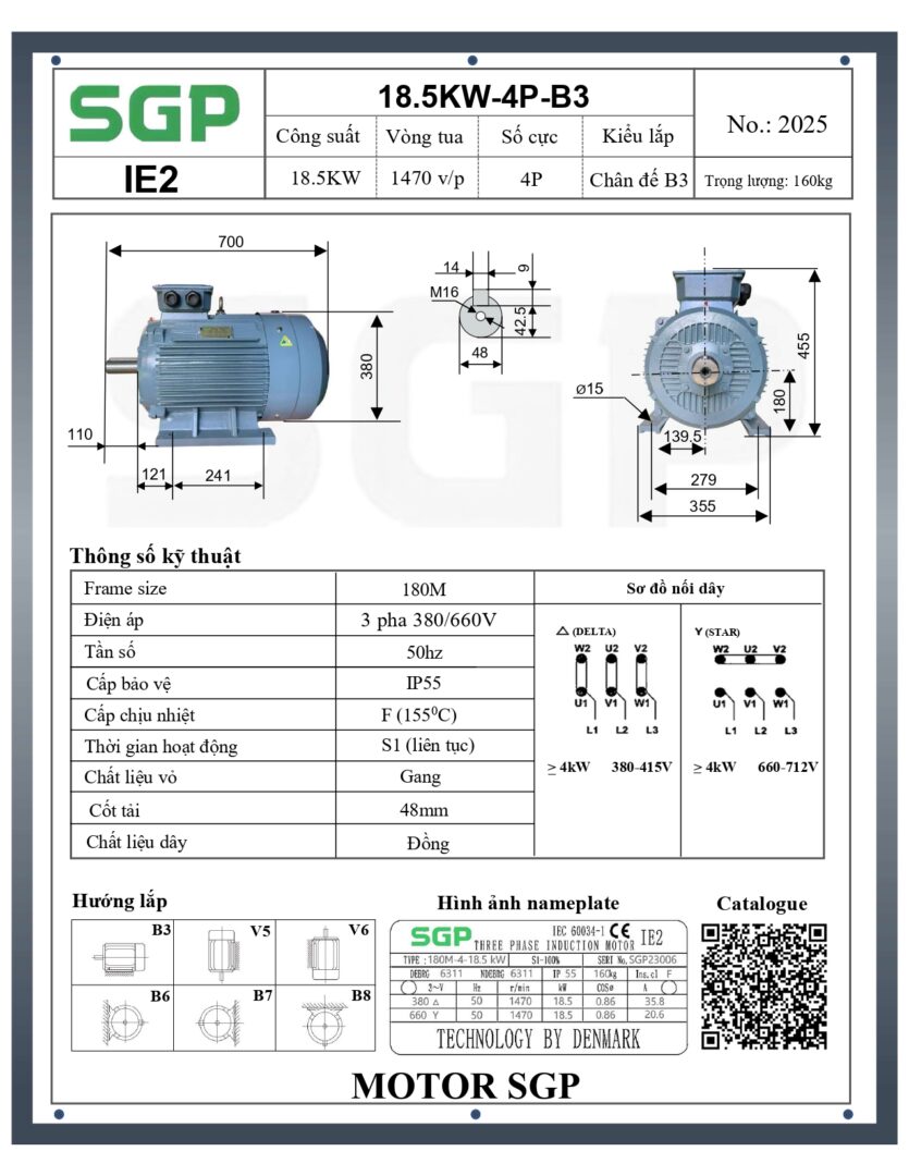 Thông số kỹ thuật của Động Cơ Điện SGP 18.5kW 4 Cực Chân Đế