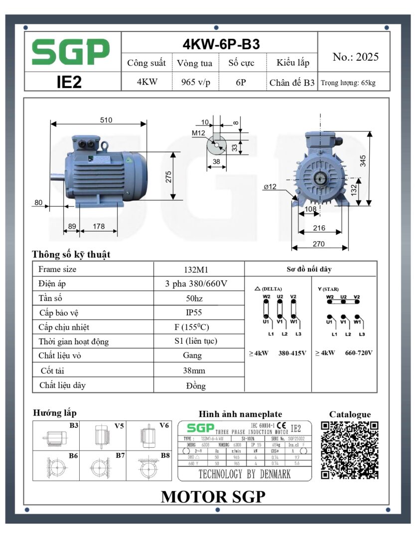Thông số kỹ thuật của Động Cơ Điện SGP 4kW 6 Cực Chân Đế