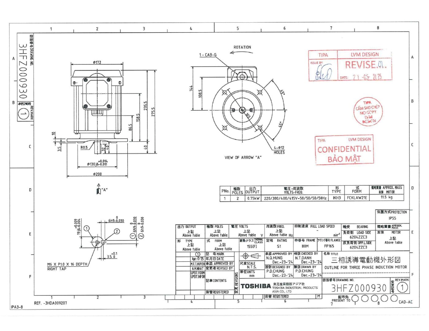 Cấp cách điện Class F: chịu nhiệt tốt, an toàn khi vận hành lâu dàiPhù hợp cho môi trường nhà máy có bụi, độ ẩm cao hoặc nhiệt độ biến động.