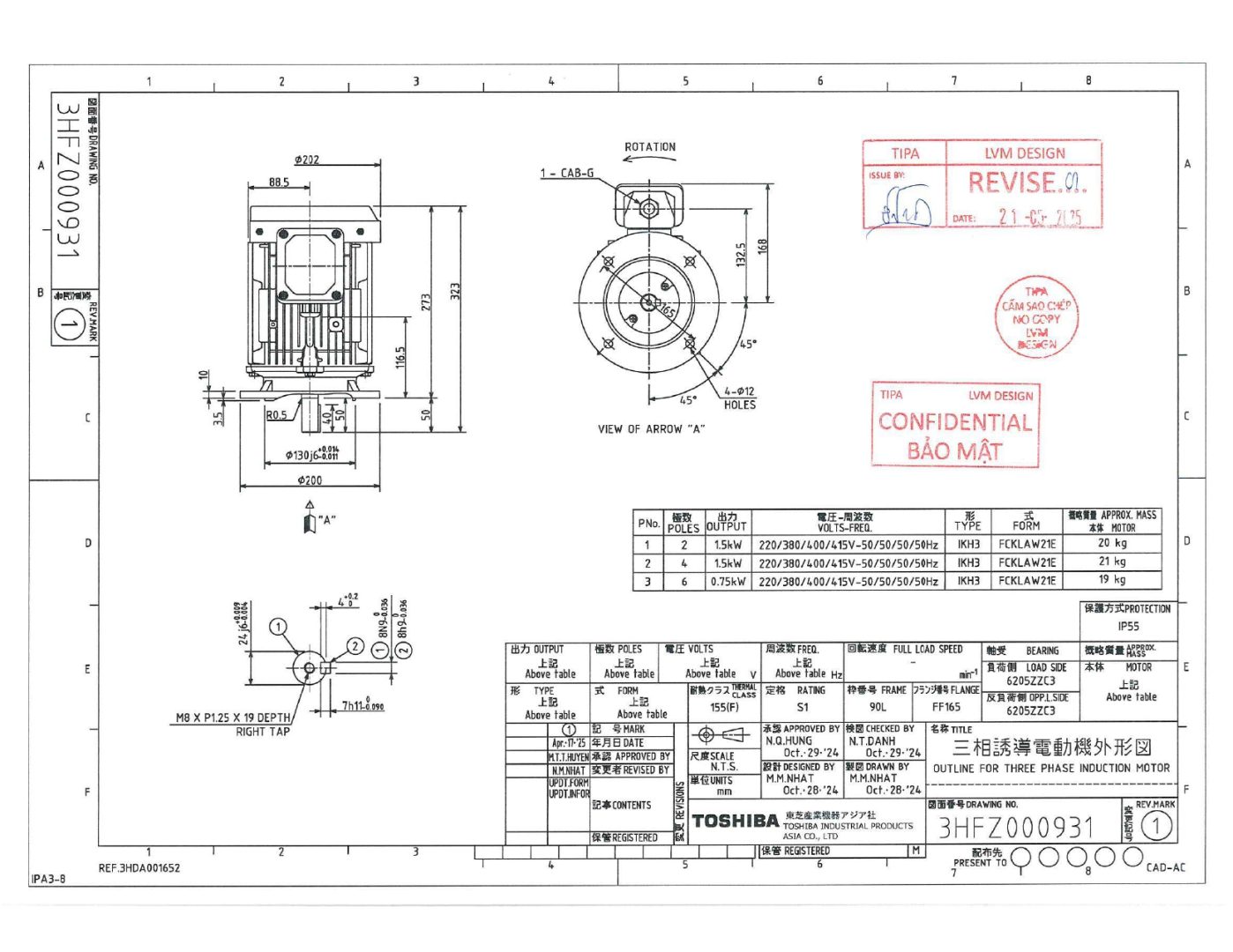 Tải file PDF thông số đầy đủ Động Cơ Điện Toshiba IE3: tại đây