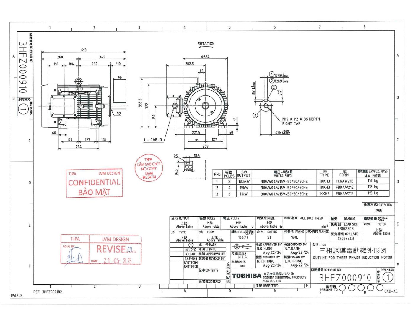 Giới thiệu động cơ điện Toshiba IE3 18.5KW 2 cực chân đế 0182ODMH7FS