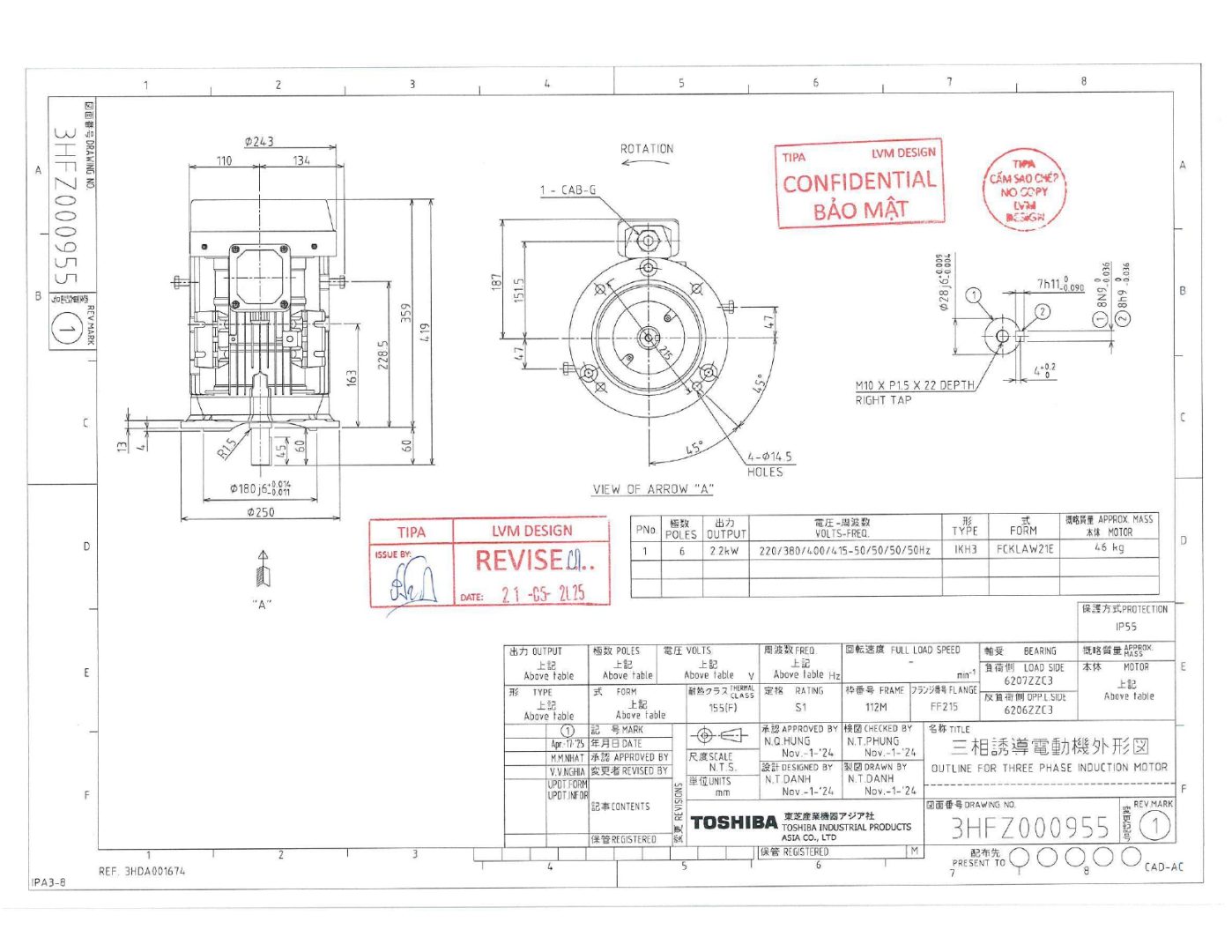 Hướng dẫn lắp đặt Động Cơ Điện Toshiba IE3 2.2kW 6 Cực Mặt Bích