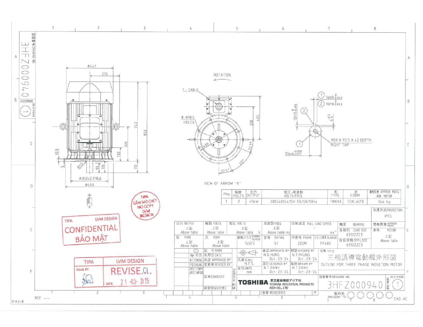 - Động cơ Toshiba IE3 được sản xuất trực tiếp tại nhà máy TIPA (Toshiba Industrial Products Asia) đặt tại Việt Nam. Điều này giúp chủ động nguồn linh kiện, rút ngắn thời gian giao hàng, và đáp ứng nhanh các yêu cầu kỹ thuật của khách hàng trong nước – một lợi thế lớn khi so với hàng nhập khẩu.
