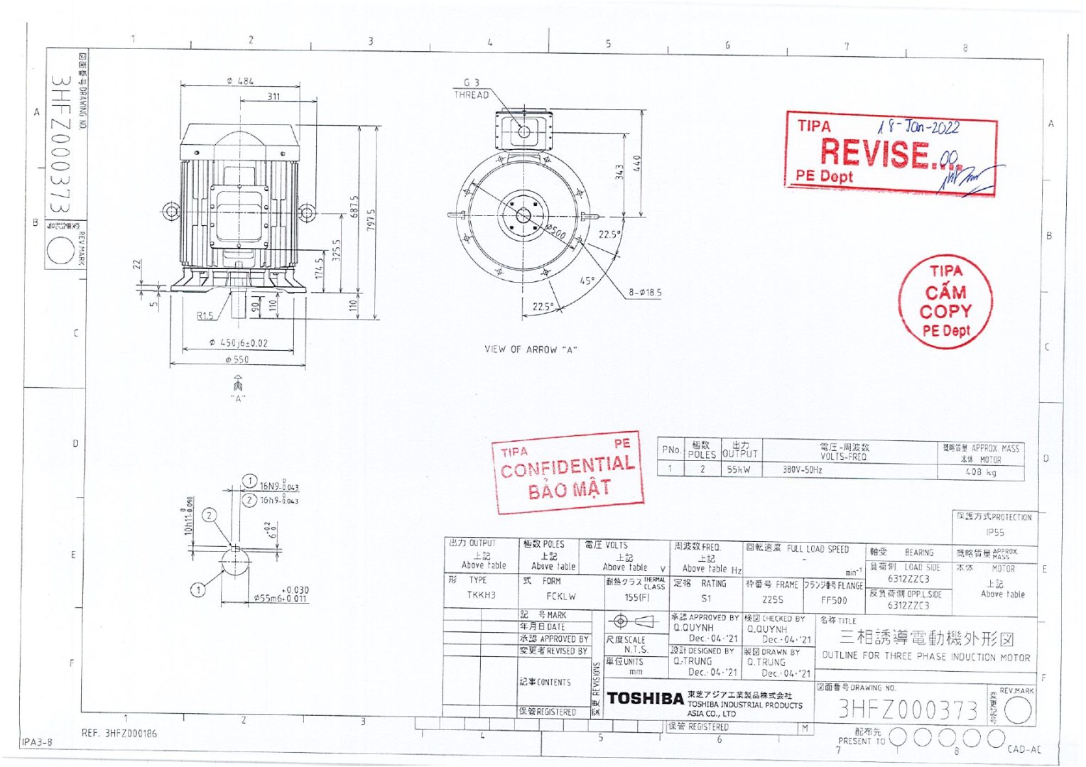 Thông số kỹ thuật của Động Cơ Điện TOSHIBA IE3 55kW 2 Cực Mặt Bích 0552ODMH7JS