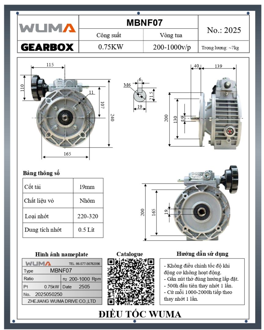 KHUYẾN CÁO VÀ HƯỚNG DẪN SỬ DỤNG HỘP ĐIỀU TỐC MẶT BÍCH WUMA 0.75KW MBNF07