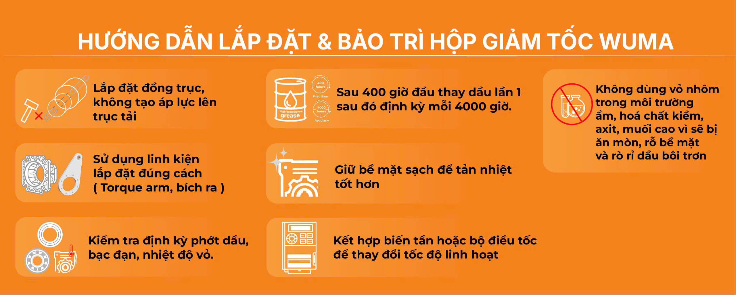LƯU Ý KHI SỬ DỤNG HỘP GIẢM TỐC CỐT ÂM WUMA 1.1kW