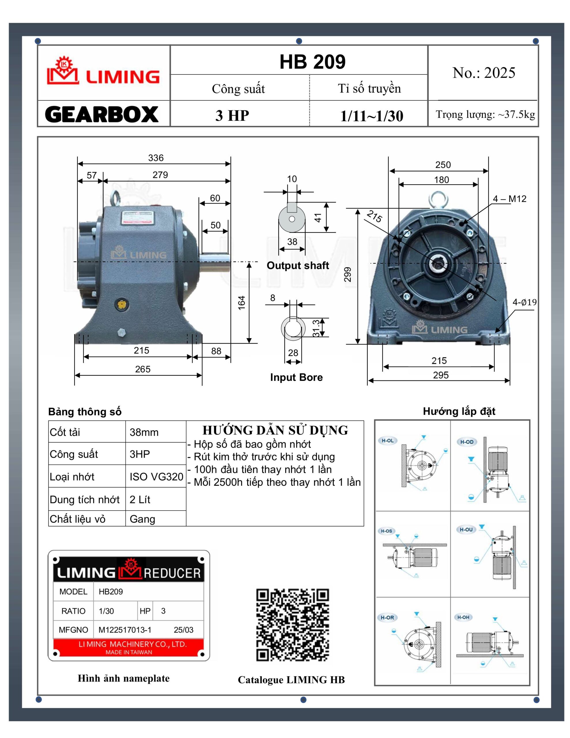 Hướng dẫn lắp đặt và sử dụng Hộp Giảm Tốc Liming Chân Đế HB209-3HP