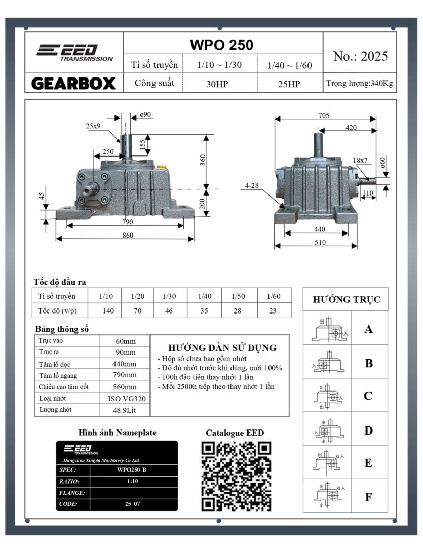LƯU Ý KHI SỬ DỤNG HỘP GIẢM TỐC TRỤC VÍT EED WPO 250
