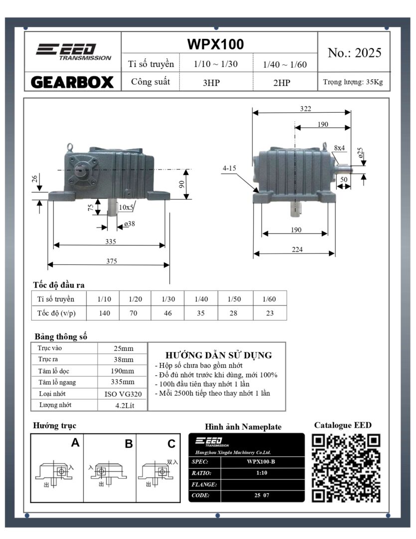 Giới thiệu về hộp giảm tốc trục vít eed wpx 100