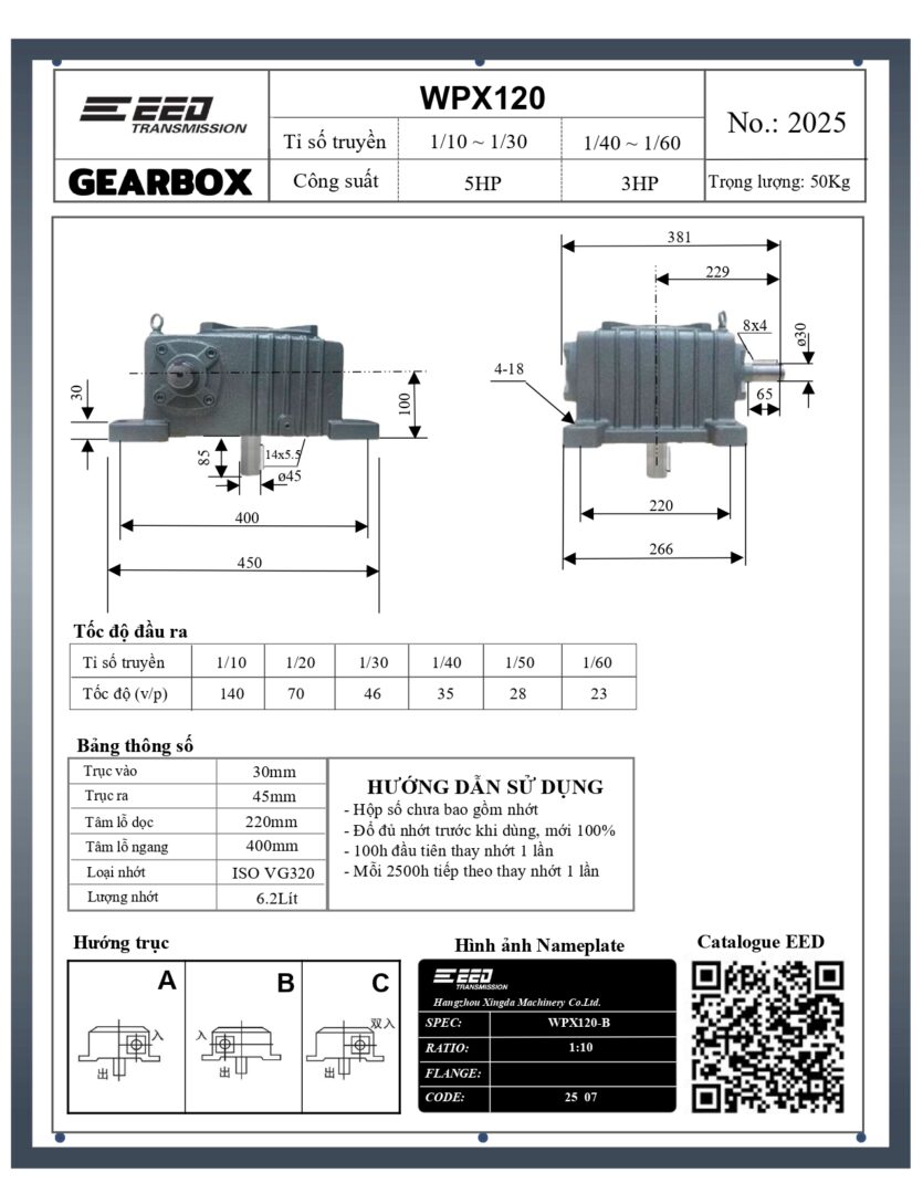 Giới thiệu về hộp giảm tốc trục vít eed wpx 120