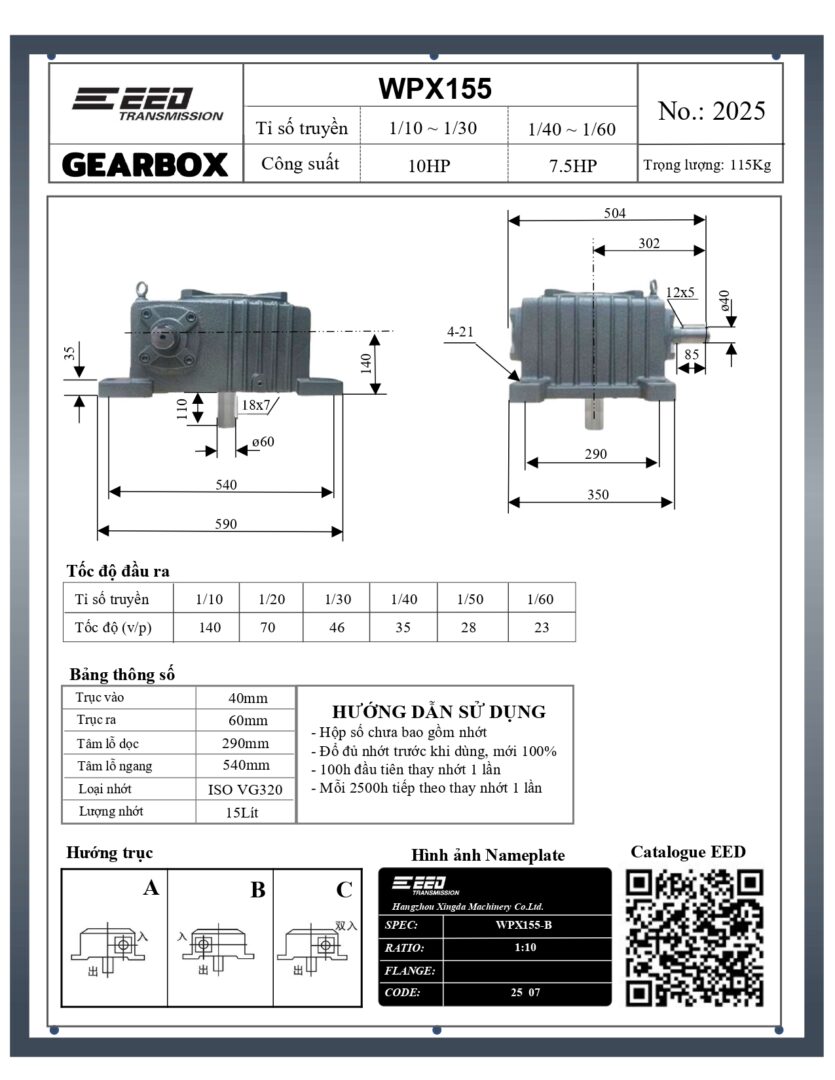 Lưu ý khi sử dụng hộp giảm tốc trục vít EED WPX 155