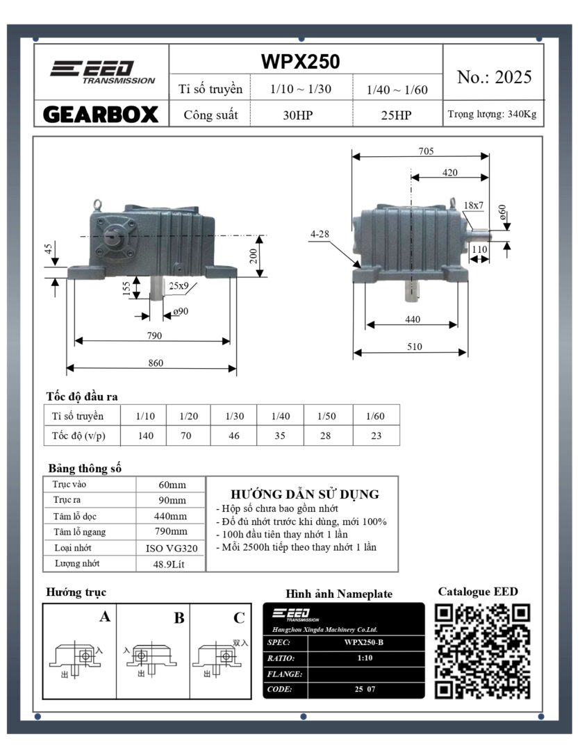 LƯU Ý KHI SỬ DỤNG HỘP GIẢM TỐC TRỤC VÍT EED WPX 250