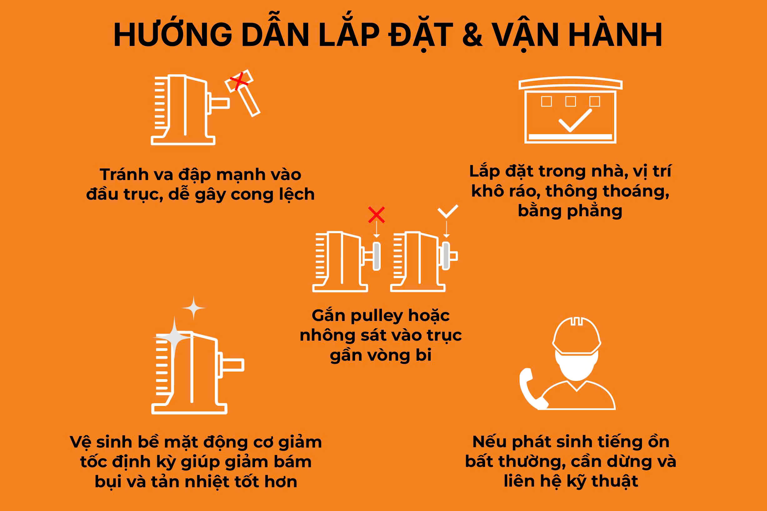 - Đảm bảo trục motor và trục tải đồng tâm tuyệt đối, tránh rung khi vận hành.