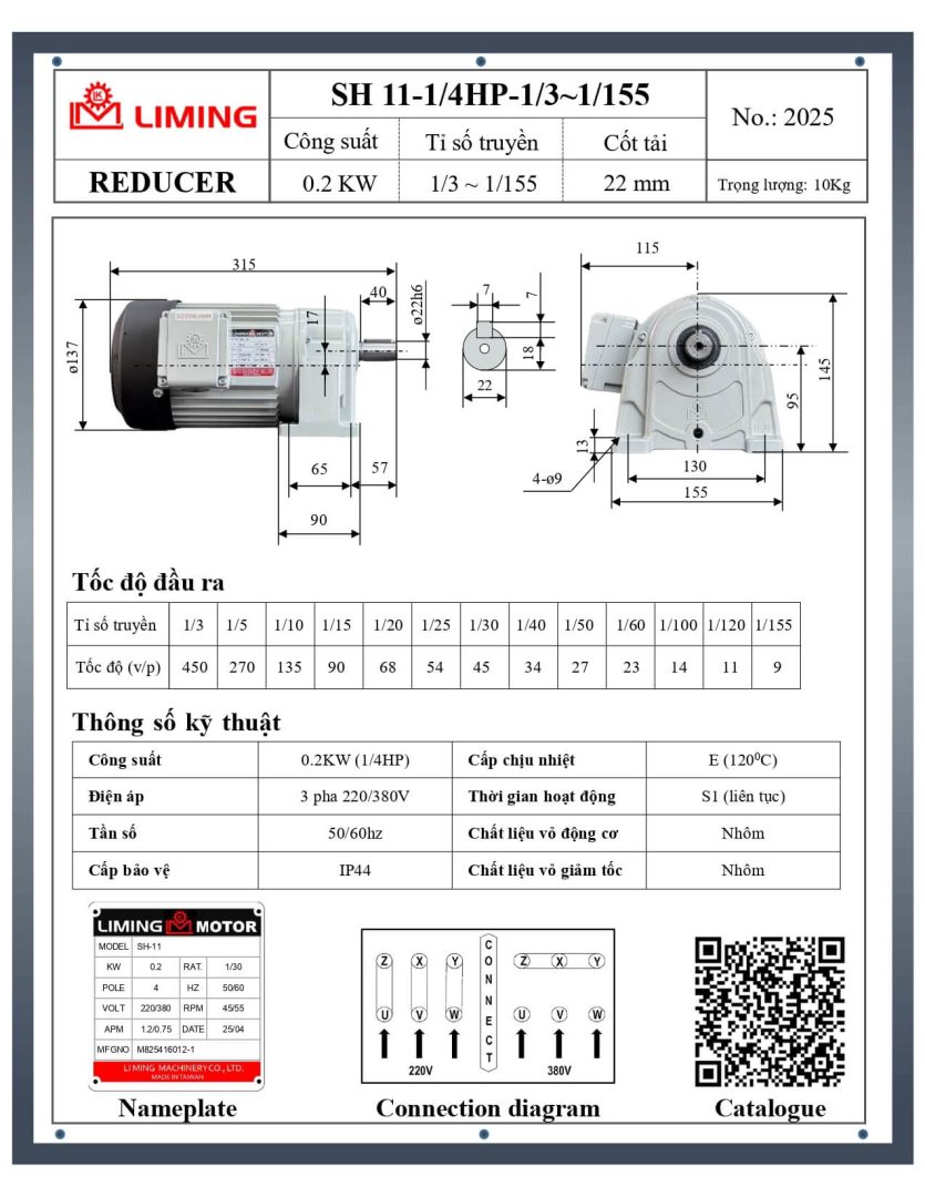 → Tải file PDF thông số catalogue đầy đủ giảm tốc Liming: tại đây