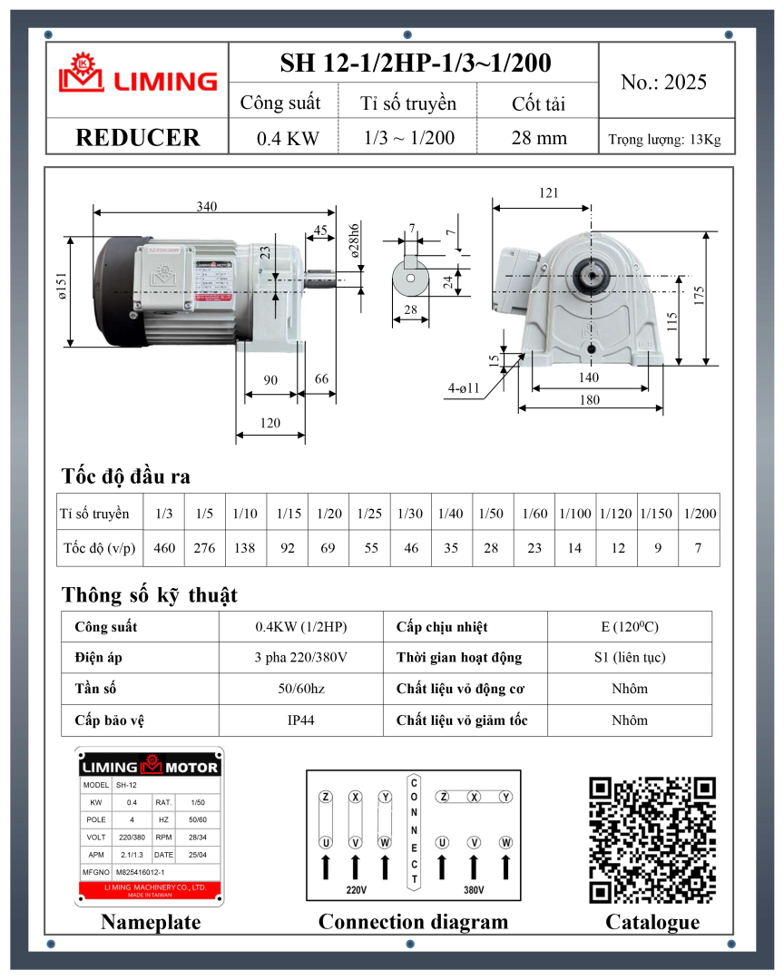 → Tải file PDF thông số catalogue đầy đủ giảm tốc Liming: tại đây