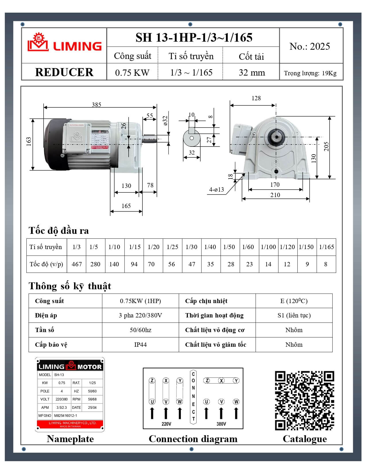 → Tải file PDF thông số catalogue đầy đủ giảm tốc Liming: tại đây