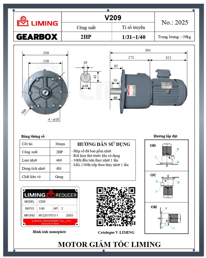 HƯỚNG DẪN THAY DẦU VÀ BẢO DƯỠNG ĐỊNH KỲ MOTOR GIẢM TỐC LIMING MẶT BÍCH V209-2HP