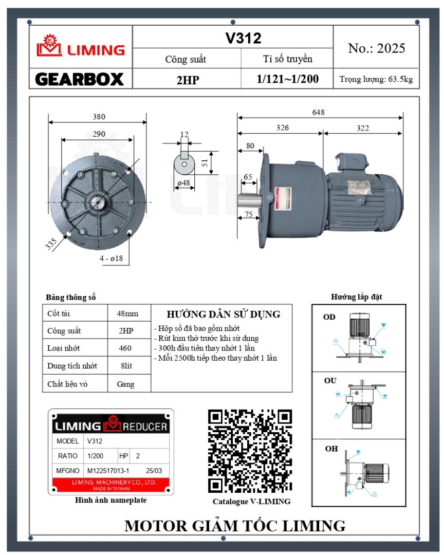 HƯỚNG DẪN LẮP ĐẶT MOTOR GIẢM TỐC LIMING MẶT BÍCH V310-2HP