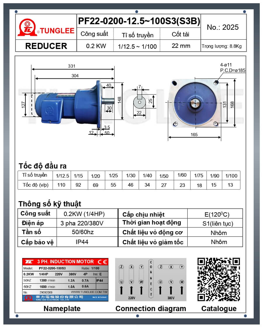 HƯỚNG DẪN LẮP ĐẶT MOTOR GIẢM TỐC TUNGLEE MẶT BÍCH 0.2kW PF22-0200-20S3