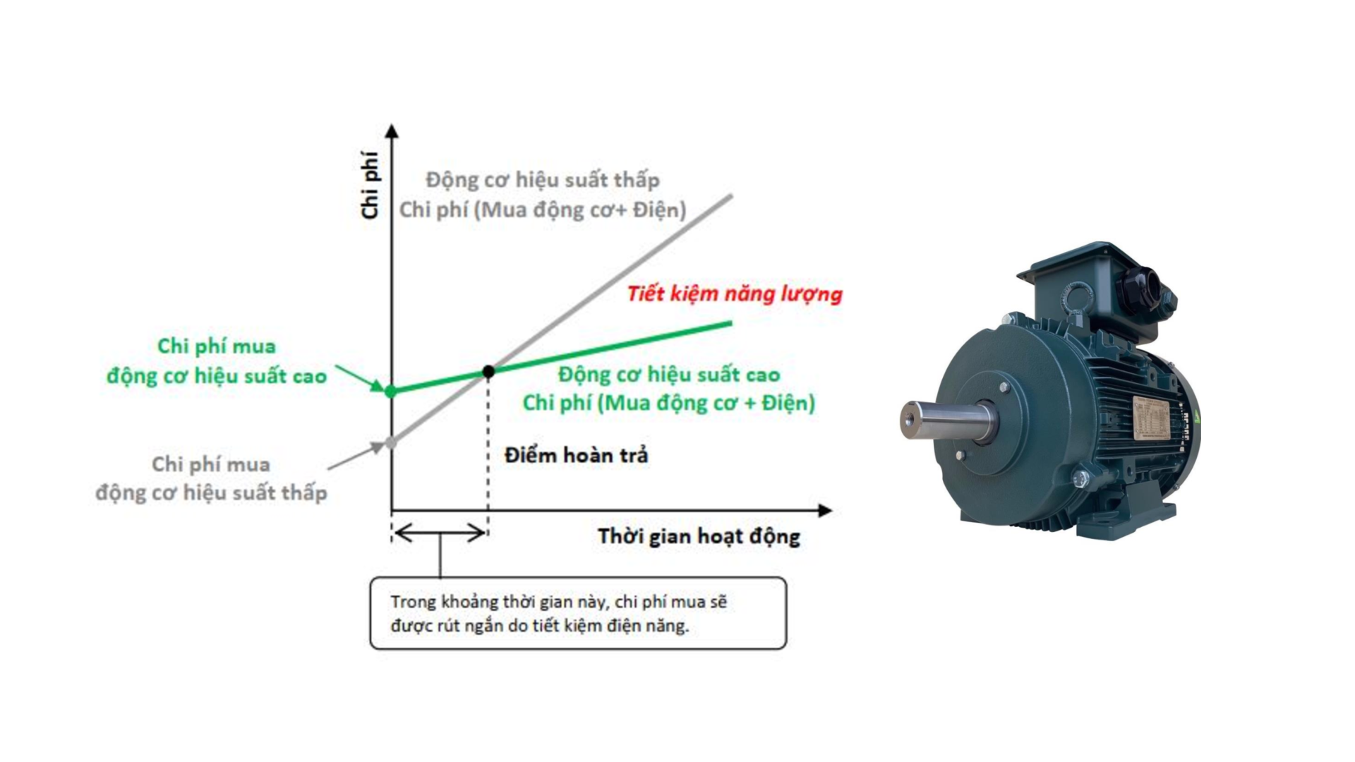 Động cơ IE3 tiết kiệm điện hơn IE2 từ 15–20%, đáp ứng các tiêu chuẩn tiết kiệm năng lượng hiện hành, đồng thời giúp doanh nghiệp giảm chi phí dài hạn.